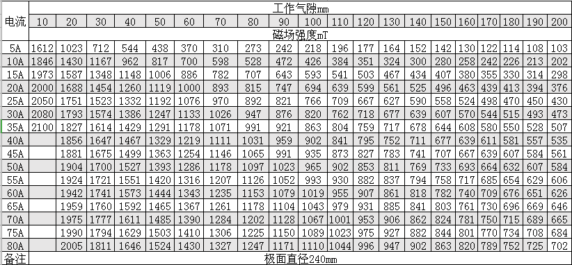 磁感應強度:11000 Oe(氣隙100mm時)